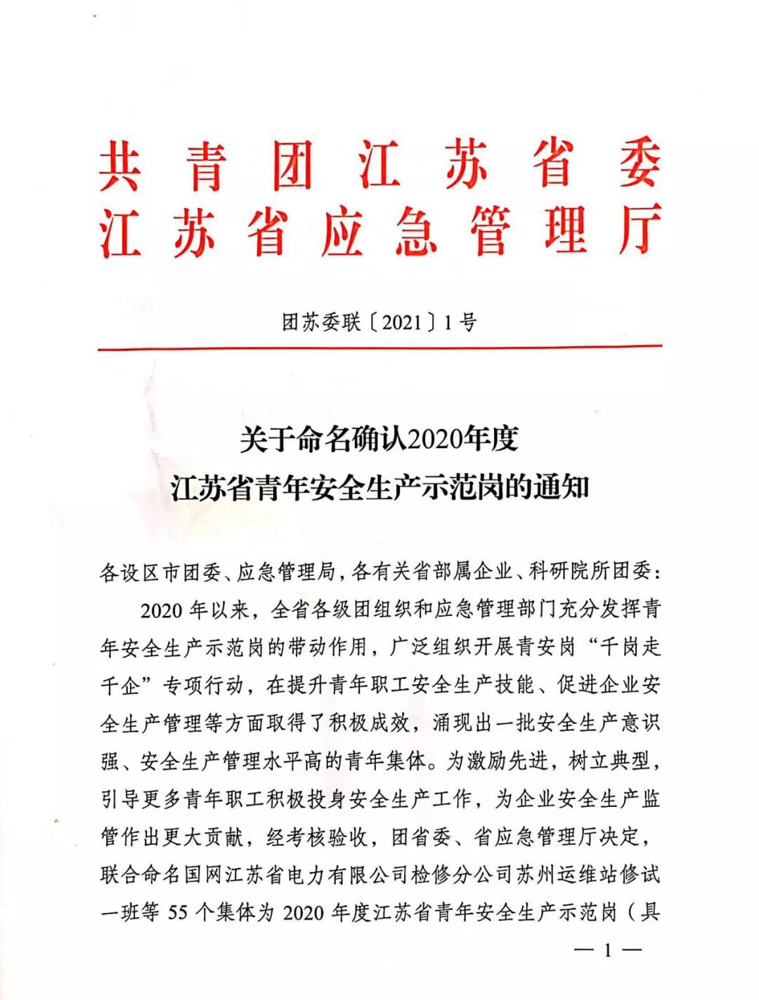 據(jù)了解,“2020年度江蘇省青年安全生產(chǎn)示范崗”是團(tuán)省委和省應(yīng)急管理廳聯(lián)合開展的一項(xiàng)創(chuàng)建活動(dòng),旨在激勵(lì)先進(jìn)、樹立典型,引導(dǎo)更多青年職工積極投身安全生產(chǎn)工作。