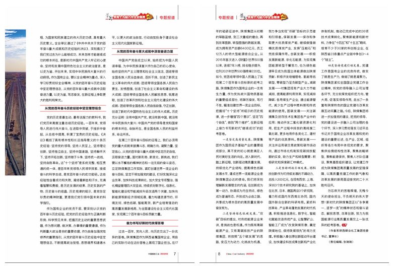 《中國煤炭工業》刊登楊照乾署名文章《以史為鑒 篤志奮發——學習黨的十九屆六中全會精神心得體會》
