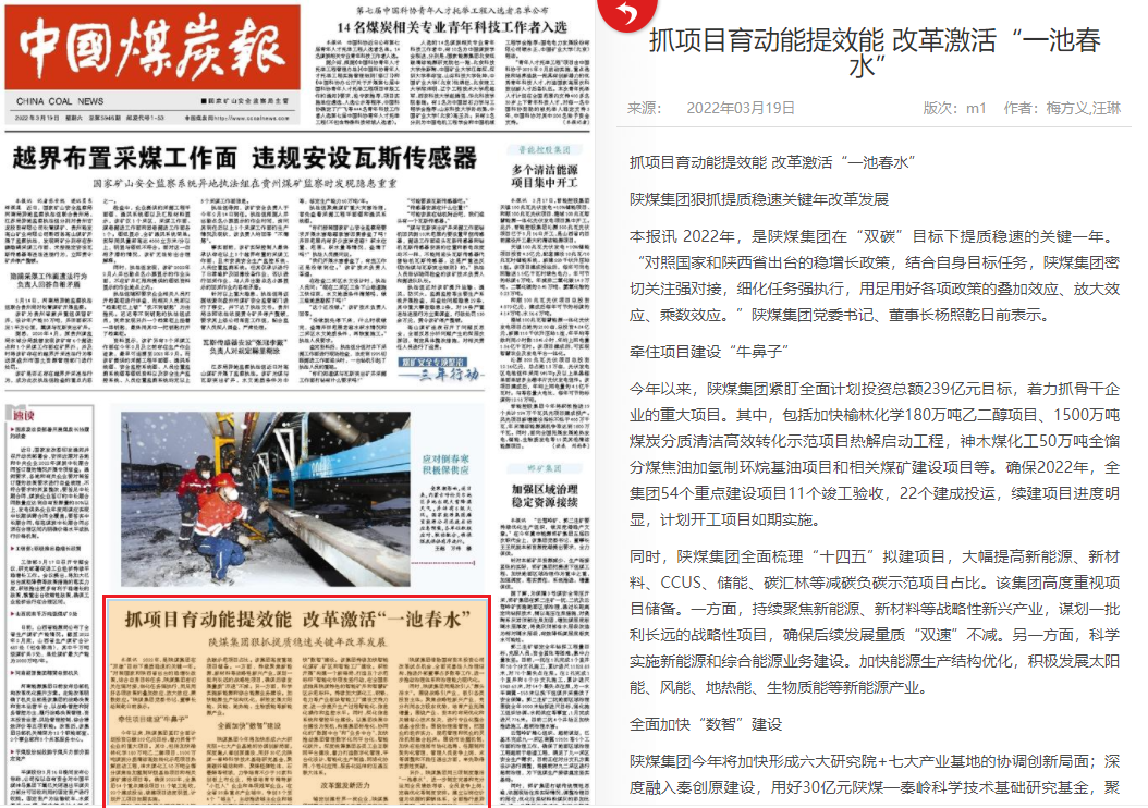 中國煤炭報| 陜煤集團狠抓提質穩速關鍵年改革發展