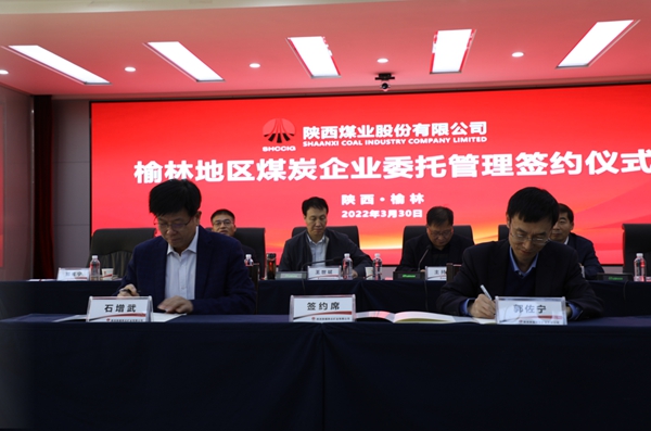 按照會(huì)議議程,會(huì)議進(jìn)行了榆林地區(qū)煤炭企業(yè)委托管理交接。首先宣讀了《關(guān)于調(diào)整授權(quán)委托管理的通知》《關(guān)于涌鑫礦業(yè)的委托管理協(xié)議》,陜北礦業(yè)負(fù)責(zé)人與榆北煤業(yè)負(fù)責(zé)人現(xiàn)場(chǎng)簽署了《關(guān)于涌鑫礦業(yè)的委托管理協(xié)議》。